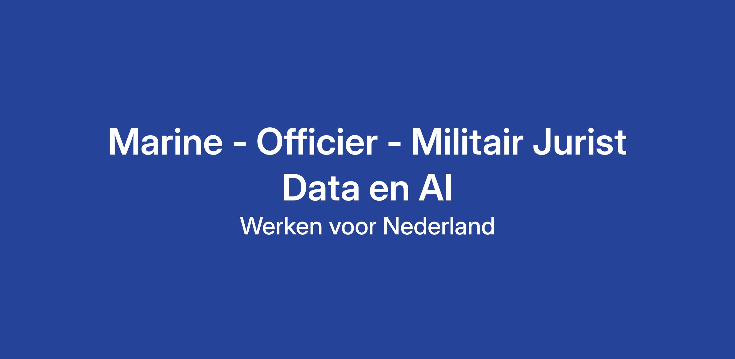 Als officier jurist bij de Koninklijke Marine geef je advies over allerlei juridische aangelegenheden waarmee een commandant of afdelingshoofd in zijn of haar taakuitvoering wordt geconfronteerd. Een militair jurist heeft een brede basis en adviseert over verschillende vakgebieden, maar jij begint je loopbaan in het werkveld van AI, cyber en privacy. Dit is voor de militair juristen van de Koninklijke Marine een jong en dynamisch werkveld waarin we pionieren en waarin jouw specifieke expertise op waarde wordt geschat. Daarom zoeken we nu specifiek iemand die al ruime ervaring heeft met deze onderwerpen.