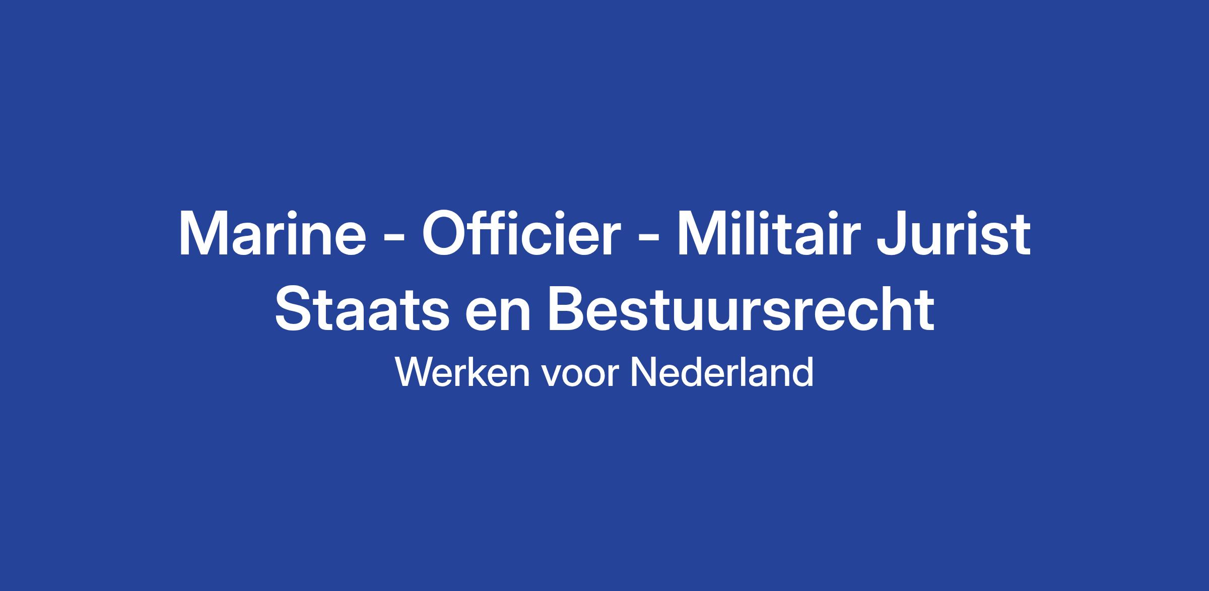 Als officier jurist bij de Koninklijke Marine geef je juridisch advies aan commandanten en afdelingshoofden. Jij helpt hen bij alles wat zij tegenkomen in hun werk, zodat zij hun taak goed en rechtmatig kunnen uitvoeren. Je hebt als militair jurist een brede basis en adviseert over verschillende vakgebieden. In deze functie start je binnen het werkveld van het staats- en bestuursrecht, met richting omgevingsrecht. Dit is een nieuw werkveld binnen de Koninklijke Marine. Jouw kennis en ervaring helpen om dit vakgebied verder op te bouwen en te versterken binnen de organisatie. Daarom zoeken we iemand met ruime ervaring in het staats- en bestuursrecht en/of omgevingsrecht, die deze expertise actief wil inzetten voor Defensie.